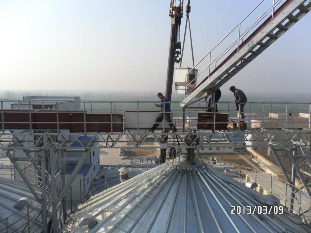 1、通風系統(tǒng),倉頂安裝自然通風窗、引風機,錐底安裝鼓風機,引流空氣到倉內(nèi)循環(huán),保護糧食不受潮,極大的保證了倉內(nèi)糧食的質(zhì)量。
