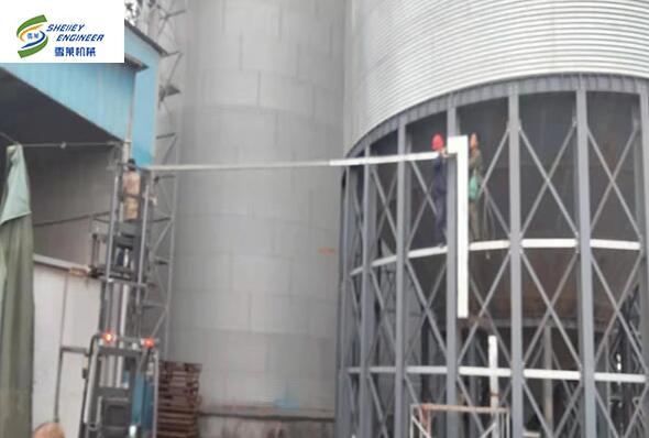 此項(xiàng)目為山東煙臺(tái)地區(qū)飼料廠鋼板倉改造加倉工程,客戶原有2臺(tái)鋼板圓筒倉,用了很多年,現(xiàn)由于生產(chǎn)規(guī)模擴(kuò)大需加倉3臺(tái)1500噸玉米倉,在歷經(jīng)不到2個(gè)月左右的安裝施工,近期終于迎來了收尾工作。