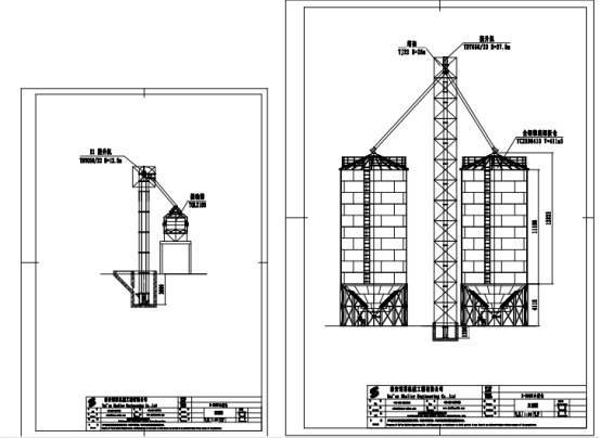 此項(xiàng)目為2套300T小麥鋼板倉(cāng),其工藝流程如下:糧食經(jīng)卸糧坑輸送到1號(hào)提升機(jī)中,糧食經(jīng)1號(hào)提升機(jī)輸送到振動(dòng)篩中,經(jīng)過(guò)振動(dòng)篩將利用物料與雜質(zhì)顆粒大小不同的原理,將物料中的雜質(zhì),分離出去,再經(jīng)提升機(jī)輸送到頂部,配合電動(dòng)三通,分別將糧食輸送到2個(gè)300T小麥倉(cāng)中,倉(cāng)內(nèi)設(shè)有通風(fēng)和測(cè)溫裝置,可以實(shí)時(shí)檢倉(cāng)內(nèi)糧食溫度和濕度變化,達(dá)到安全儲(chǔ)糧的作用。